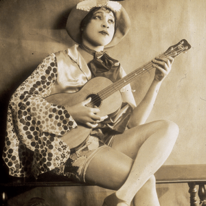 The song was introduced by singer/actress Adelaide Hall (shown here with a four-string tenor guitar, an instrument popular in the 1920s) . . .