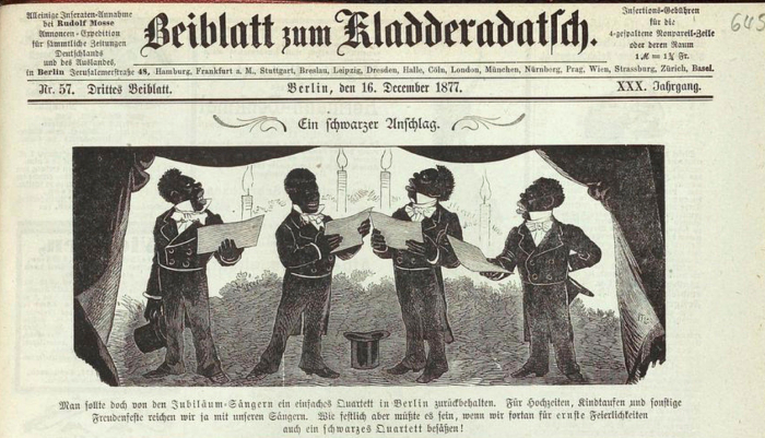 One early review of the group’s performance was headlined “Negro Minstrelsy in Church–Novel Religious Exercise,” while further reviews highlighted the fact that this group of “Negro minstrels were, oddly enough, genuine negroes,” not the burnt cork caricatures of negro minstrelsy so familiar to most audiences of the day.