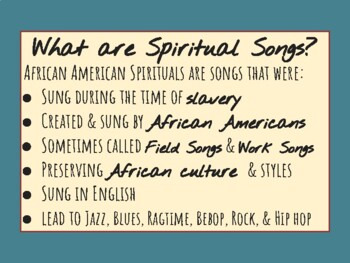 While these songs originated in and were common throughout the American South during slavery days, they were virtually unknown in the American North until the late 19th century.