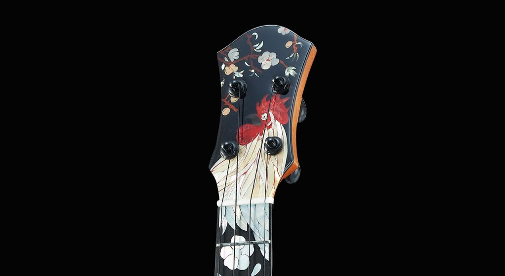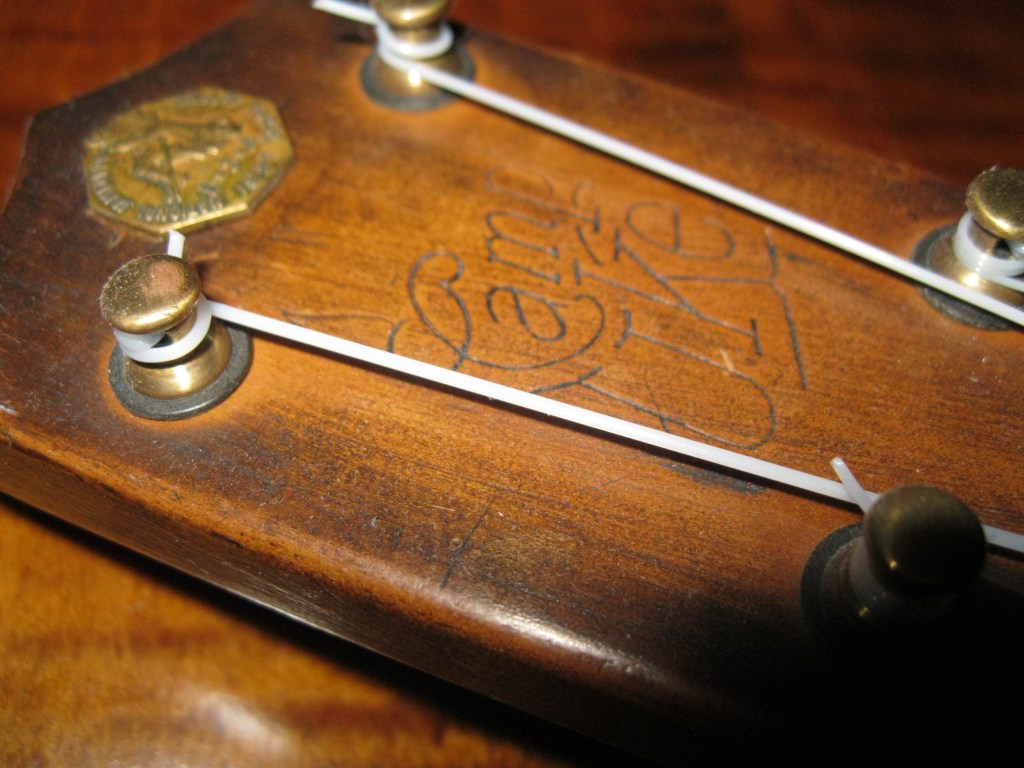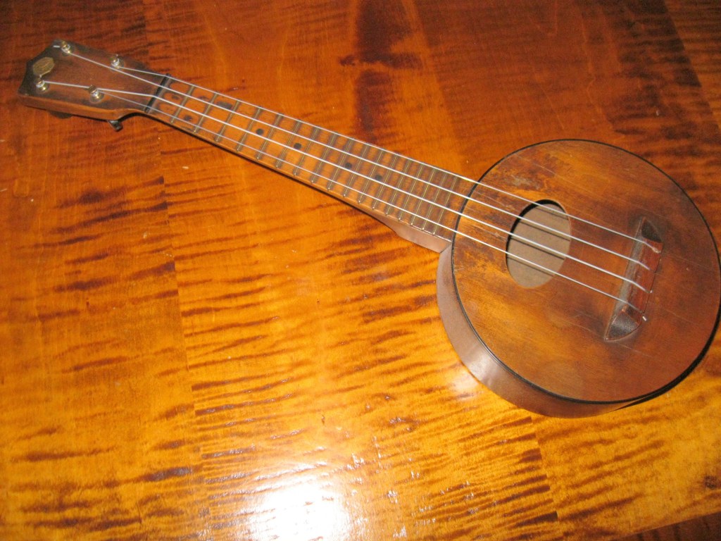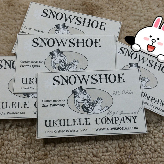 And, delightedly, here is my “Snowshoe” uke. Note the mother-of-pearl snowflake on the pegboard.