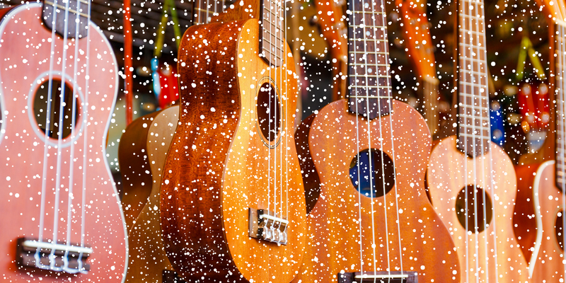 Now, what about wintry, snowy ukuleles–plenty out there to peek at through our snowglasses!