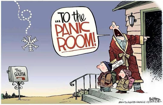 Having lived for many years in northern climes and then northern Virginia before “escaping” to New England, Alison and I were always amused at the way folks “down South” panicked at the mere thought of snow. Bless their hearts!