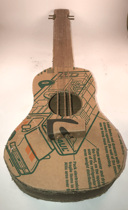 But what I did run across in my internet wanderings are a number of ukuleles (and uke cases) made—of all things—cardboard moving boxes! I can’t vouch for how they compare soundwise to my solid Koa Snowshoe but, here they are!
