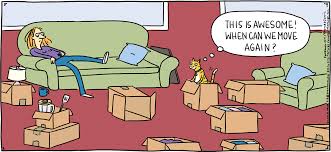 Moving on (ahem), I did a quick search for any songs about moving days, packing and unpacking boxes, arranging and rearranging furniture but found few that touched those basic bases. Here might be a good idea though . . .