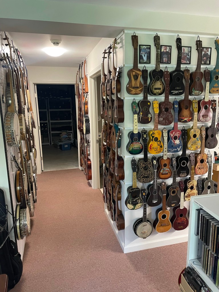 Although the distance between the two houses is short, the effort to sell, pack, move, and nestle has taken an inordinate amount of time, will, and energy—particularly when relocating the infamous banjo and ukulele collection. Never fear, however; it’s all here!