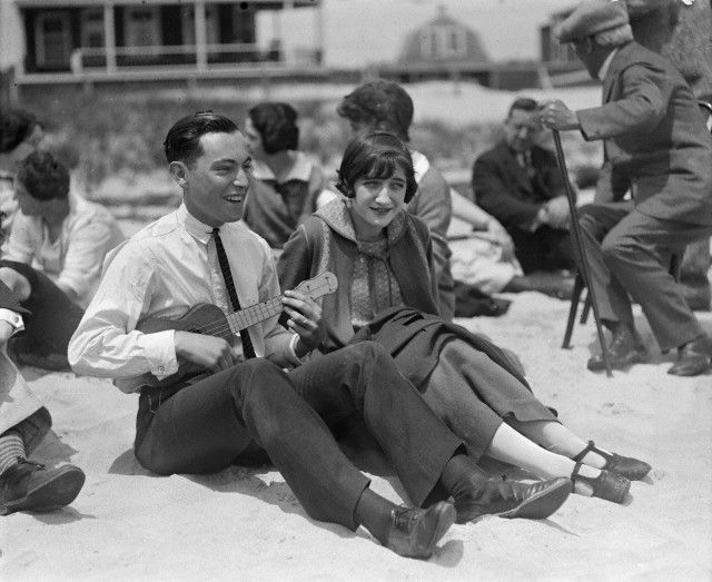 A 1940s film version on some artificial beach, no less. Tap or click: